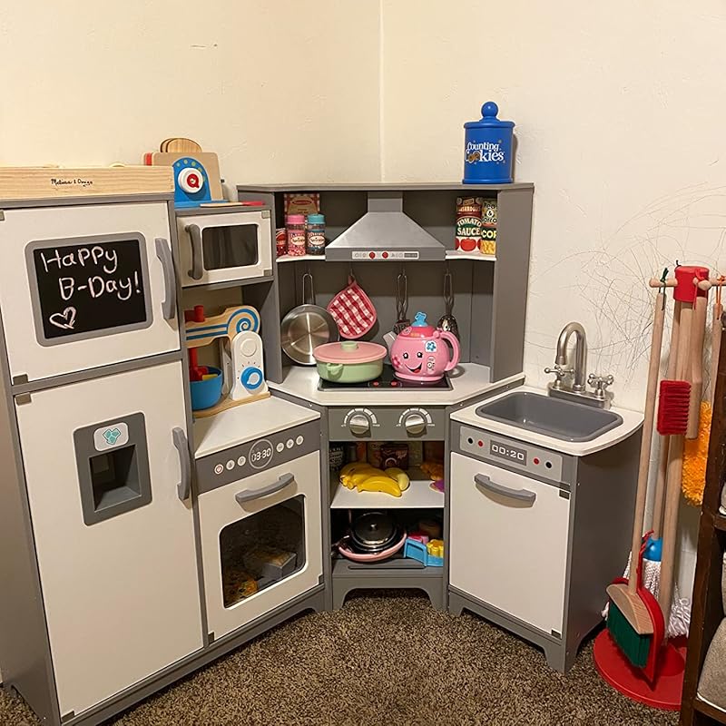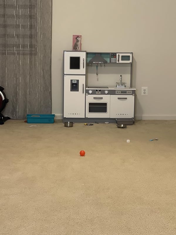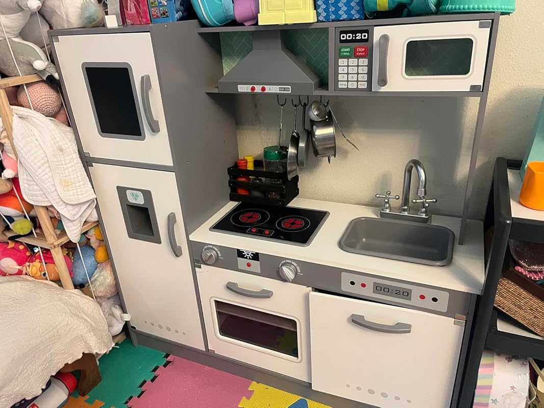 We are so impressed! I spent hours shopping for and comparing various kitchens, but this was a great buy for a Christmas budget. The kitchen is sturdy and was very easy to assemble. It took a little over an hour to tag-team. The lights and sounds are a must for little ones. The size is perfect for or two year old and big enough for creative play for hours. I’m glad I didn’t buy into the corner kitchen because this one saves space and has plenty of storage and features. Don’t think twice and waste time searching. It’s easy to get carried away, and this kitchen has everything you really need.My only suggested upgrades include the sink which doesn’t stay in place and the oven door which doesn’t stay shut. We taped down the oven light button to avoid burnout of the light and/or batteries. Both are minor.