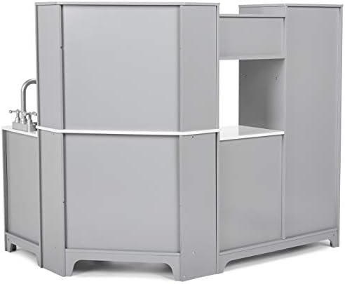 I was on the fence purchasing this product. I am not a fan of MDF products and I steer clear of all MDF products for my child. They have to be solid wood for me to buy them. But play kitchens made from solid wood are almost non existent and the ones that do exist cost hundreds of dollars if not more than a thousand. Not many parents can swing that for their kids and I am one of them so I had to cave. After several months of research I decided to give this one a chance since it met all of the other criteria makes I needed for her. (Interactive buttons, a “working” microwave, a refrigerator with ice dispenser, lights and realistic sounds, a designated prep counter, etc). I still don’t love that this play kitchen it is made from MDF. HOWEVER, this product is so well designed and the assembly process thoroughly thought through that I didn’t have the usual snags in assembling other MDF products which compromised their structural integrity. There is no compromise in structure with this play kitchen. It is very sturdy and will hold up to the way toddlers play. I feel very confident and safe with my 2 year old playing with it. It is fun and interactive keeping her interested. She already role plays while engaging in play with the kitchen (in 2 year old fashion) which is amazing watching that part of her brain develop.Things to consider, which at first I was not thrilled about, and the reason for 4 stars instead of 5:1. The dimensions on this listing are incorrect. I purchased this mostly because I was expecting the counter to actually be 24 inches high. IT IS NOT. The stove counter height is around 20″ and the sink and prep counter are 18″. The other dimensions seem to be more accurate. I guess I should have deduced that the counter would have been lower based on the overall height, but the listing really should be corrected. So, it is SMALL, much smaller than I was wanting. My daughter is 2 and almost the size of a 4 year old. I was hoping for a kitchen that could grow with her for several years. After watching her play with it and light up with joy, I let the height issue go because her happiness was way more important than my wants in this and I think she will still play with it for a few years at least.2. The sink and the cook top do not screw into the counter. This isn’t a huge deal, but I think for added safety I would have rather had them be screwed down or held down somehow. Thankfully my daughter doesn’t know they come out otherwise all she would do is pull them out.Overall, this is a great play kitchen and worth the effort and money. I would recommend having two people assemble, you can do it alone, but it makes some of the pieces a little easier to put together if there are two sets of hands.