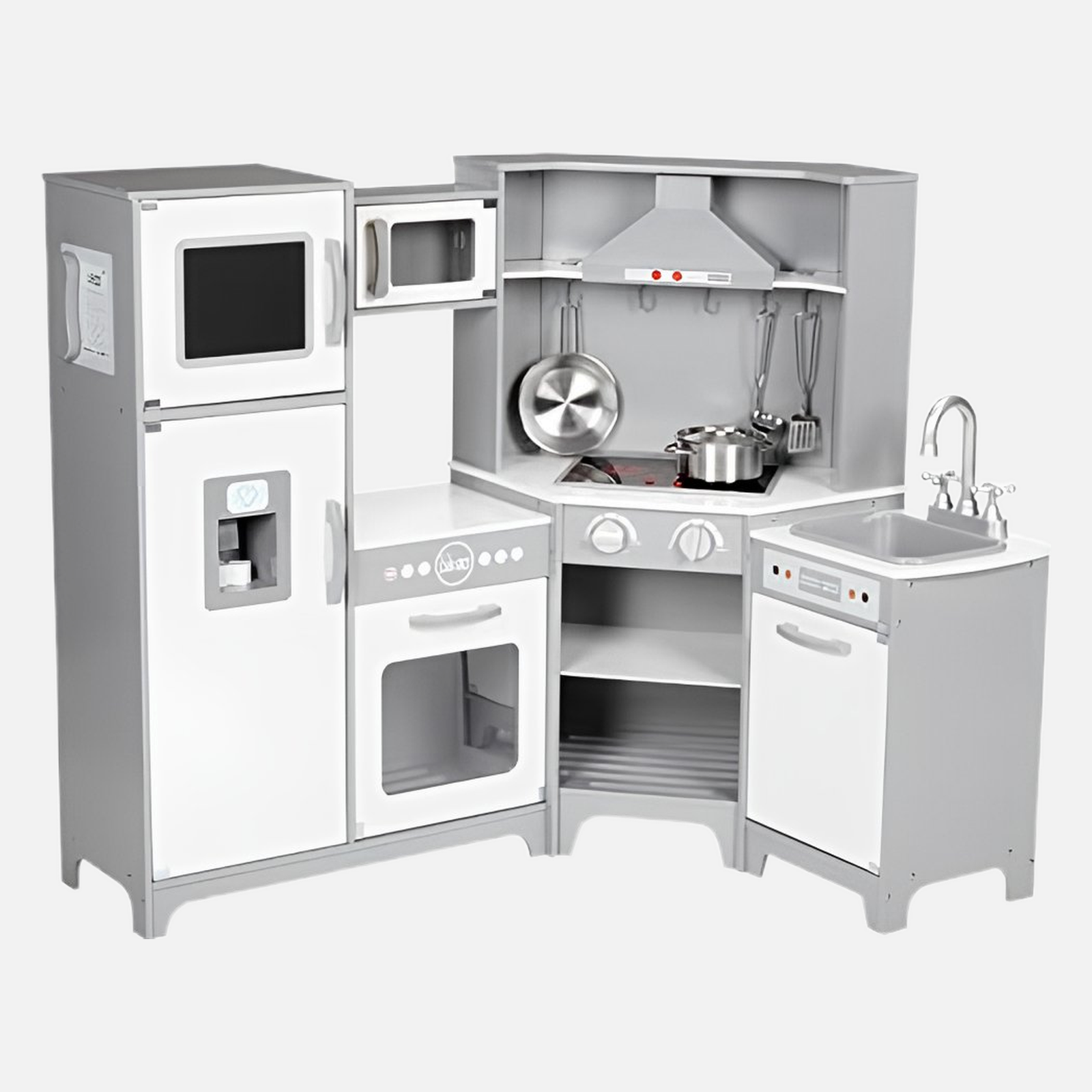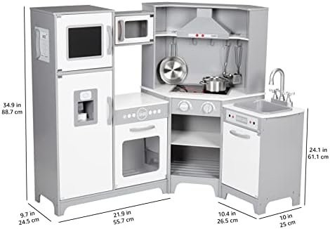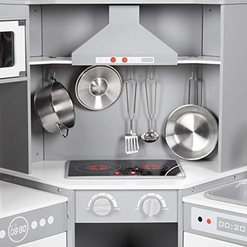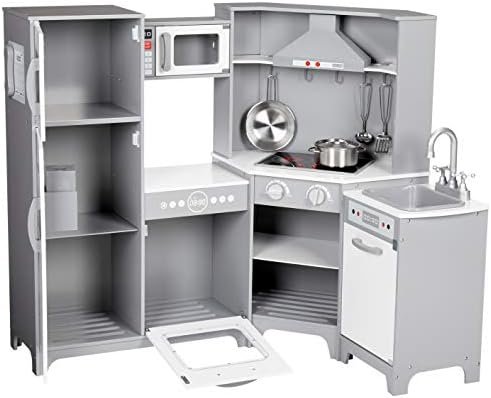 Amazon Basics Kids Corner Wooden Kitchen Toy Playset with Stove, Oven, Sink, Fridge and Accessories