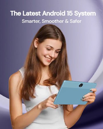 6000mAh Battery & PD Fast Charging – Built-in 6000 mAh rechargeable Lithium battery, allowing users to enjoy up to 6 hours of continuous video playback. This android 15 tablet supports 18W PD fast charging and CC protocol, compatible with most of chargers on the market. Additionally, it incorporates face recognition, automatic wake-up, low-battery reminder, and charging reminder features, enhancing convenience and user experience.