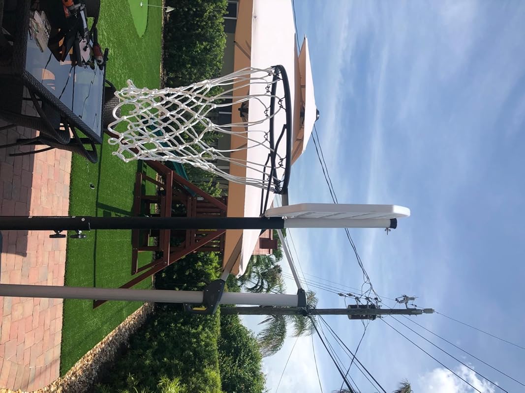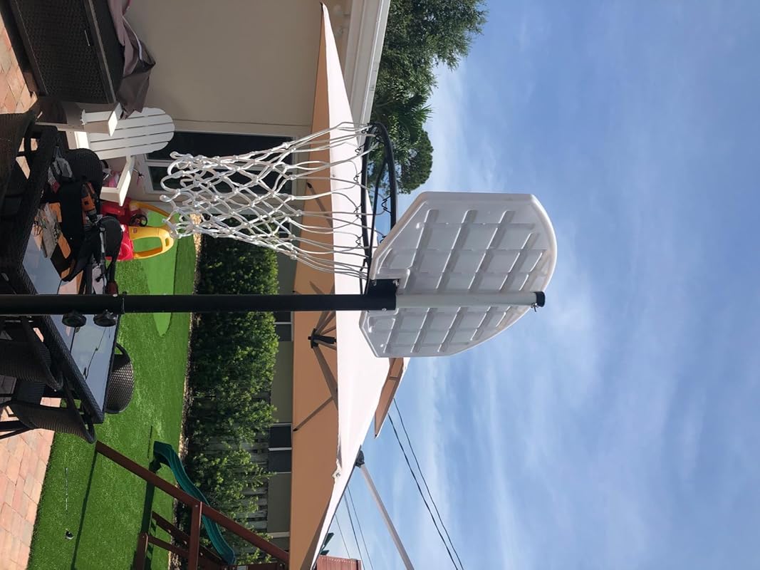 I ordered this for my sons -ages 13 and 15 and 5’7″ and 5’8″ respectively- a few days before we knew school would be cancelled due to the Coronavirus pandemic. It was delivered sooner than I expected and easy enough to put together by myself (I am a 39 year old nurse). I didn’t want to spend a fortune or buy anything too nice or big in the event they never used it but I also wanted something they could do outside together that would get them moving. This goal did not disappoint. We have had it for exactly two weeks and it is easy to move (we used water not sand) when you want to face away from the sun and surprisingly sturdy. My boys have tried to dunk the ball repeatedly and while I can’t say it is “unmoving” I can tell you that it hasn’t scared me into thinking it’s going to fall over or fall apart yet. Anyone complaining about the quality or height of this goal should consider the price and description; I honestly expected a little less quality but was pleasantly surprised by this inexpensive treat.
