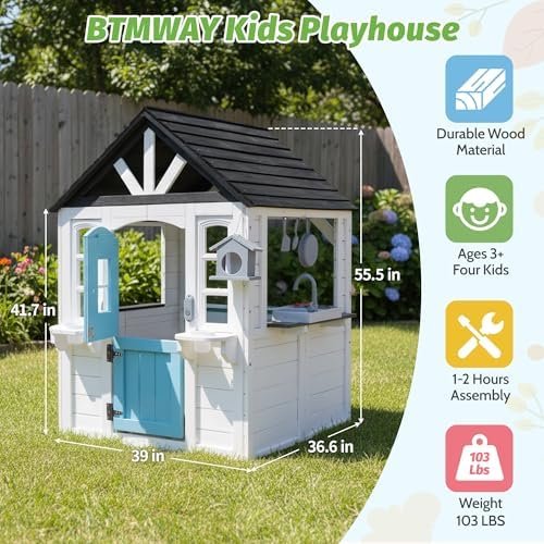 BTMWAY Kids Playhouse Outdoor,Cedar Wooden Play House