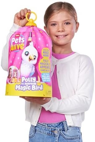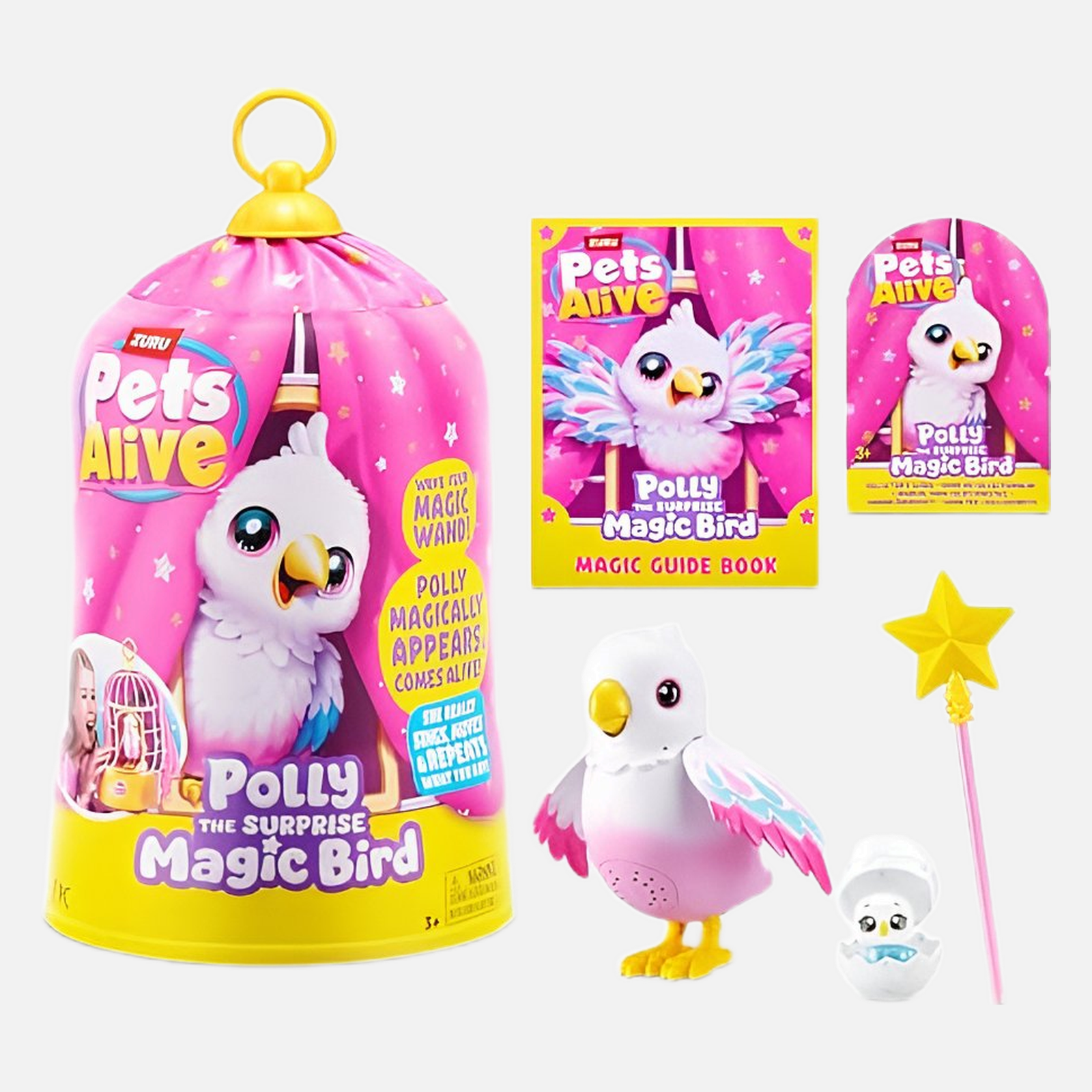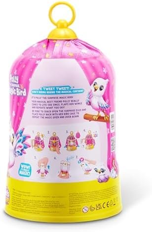 Get ready for a magical experience with Polly the Magic Bird! With just a simple magic trick, she springs to life, singing, moving, and even repeating what you say. Polly also comes with an adorable hatchable baby bird, adding even more charm to the fun. Full of enchanting surprises, Polly is bound to delight with her magical abilities. Abracadabra! Peek behind the curtain and discover the enchanting Polly the Magic Bird! Perform the magic trick, and watch as Polly comes to life in a truly interactive way. Watch in awe as she flaps her wings, chirps in response, and adds a touch of magic to every moment. Polly is sure to steal the spotlight and captivate everyone around, making for an extraordinary experience. A magical adventure awaits with Polly the Magic Bird!