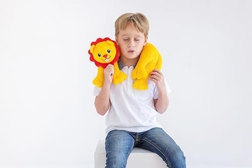 Rory the lion is such a cute and comforting stuffy. It has a little weight to it which can help regulate emotions.My son has already been using rory to help calm himself down. He is 5 and has been learning what his emotions are and how to best navigate them. I think Rory is very helpful with this.I don’t necessarily love the voice box though. It’s very loud and not adjustable. It’s especially loud when Rory is around your neck, next to your ear.I also find it annoying that he only has 2 sayings. I wish he would do just a little more.My son loves Rory though, and enjoys cuddling with him. Rory is soft and durable. He fits perfectly around my 5 year olds and 9 year olds necks. He’s fun and educational as well as great for learning about emotions.Overall, we enjoy this neck pillow toy, but I do think the price is a tad high for what he does.