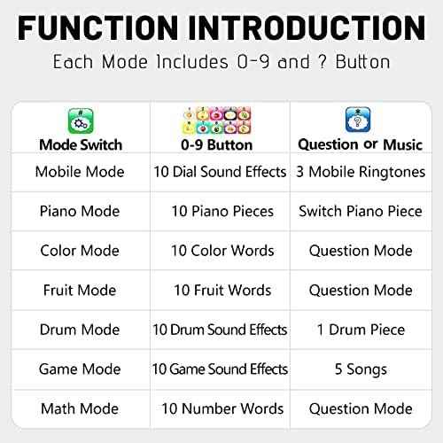 TODDLER TOY GIFT: 8 modes( mobile mode, piano mode, color mode, fruit mode, drum mode, game mode, maths mode and question mode) for baby to grow in interaction. It is a great Christmas gift for boys and girls